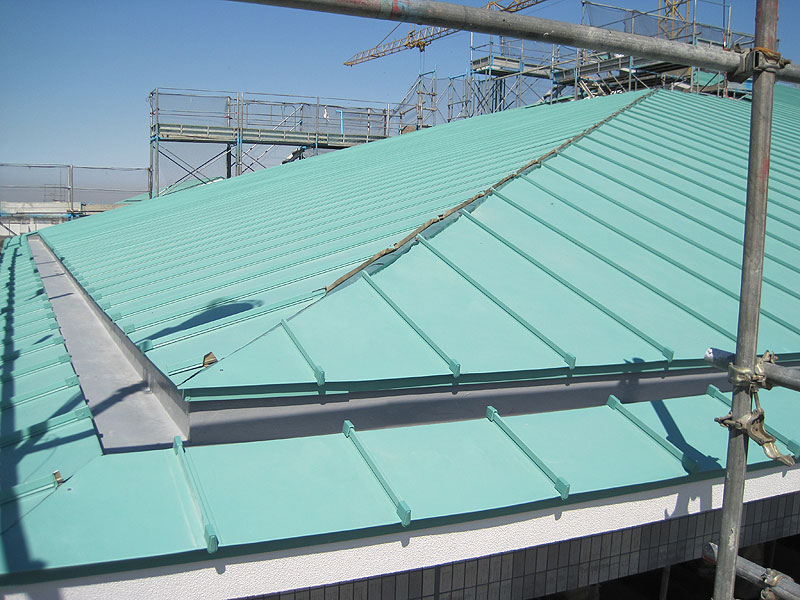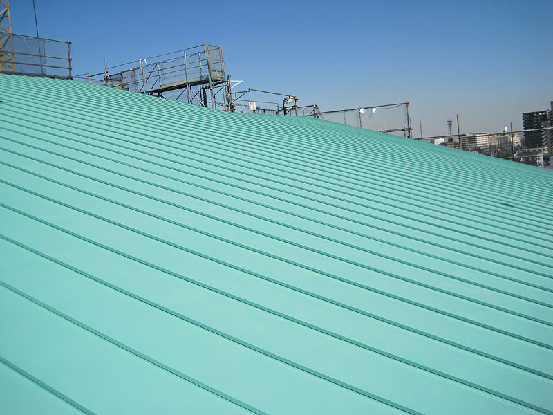 離れた場所から見る屋根は全面緑色に統一され安らぎを感じさせてくれる。