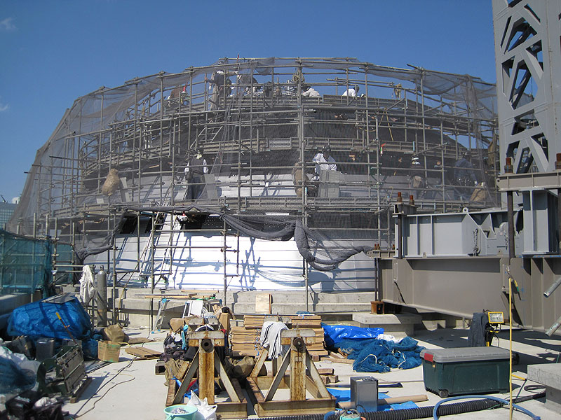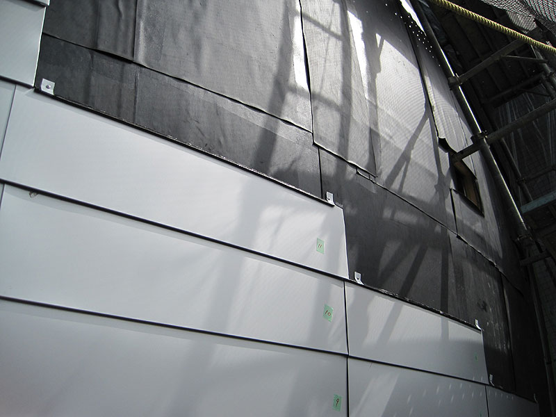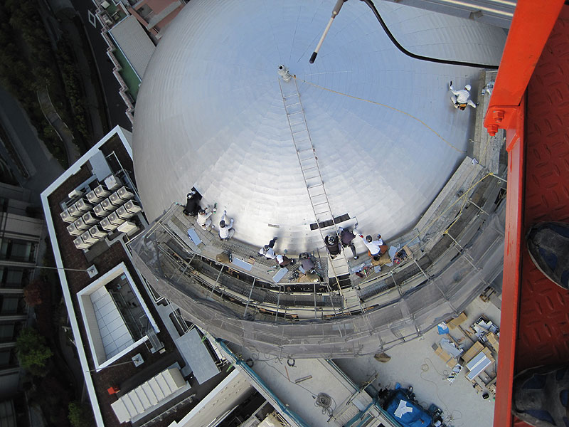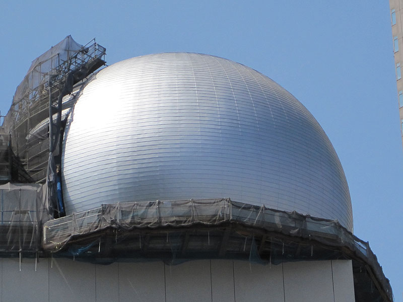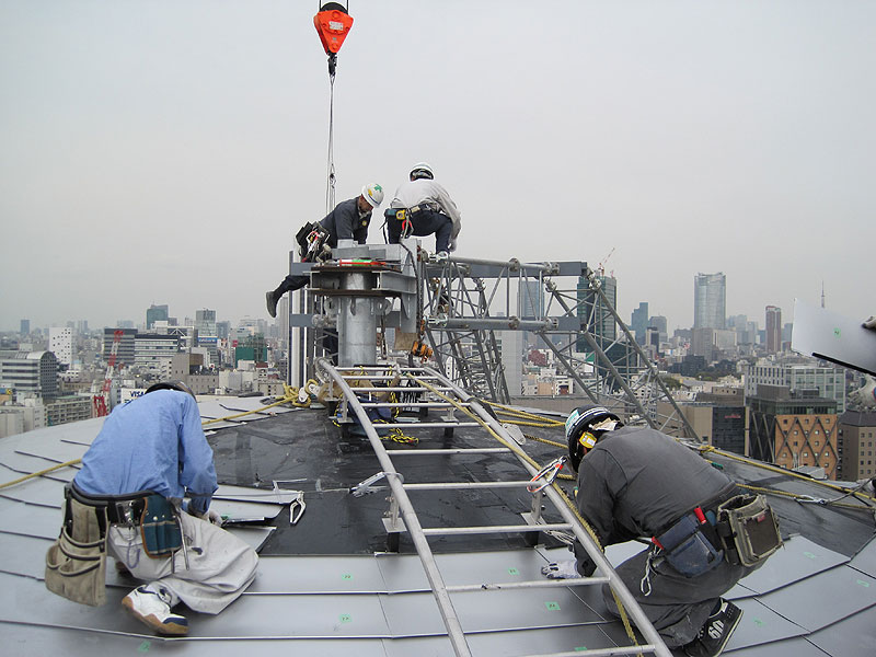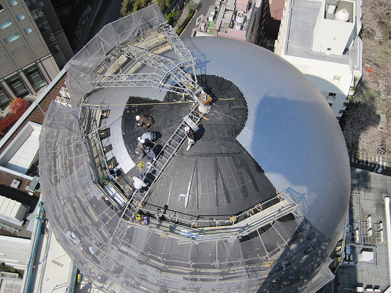 苦労も絶えなかった・・・ プライマー・防水シート・墨だし・割付・本体取付 限られた回転足場内での作業は慣れるまでに相当時間がかかり、さらに短い工期の中で昼夜の作業を余儀なくされた。 ご協力頂いた業者様・従業員に感謝。 『コスモプラネタリウム渋谷』 http://www.shibu-cul.jp/guide_cosmo.html |