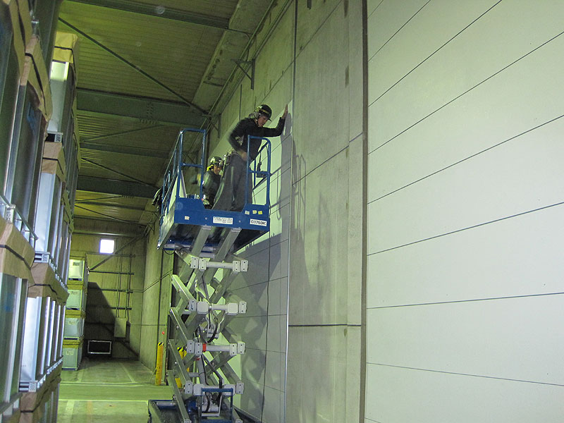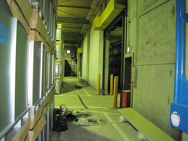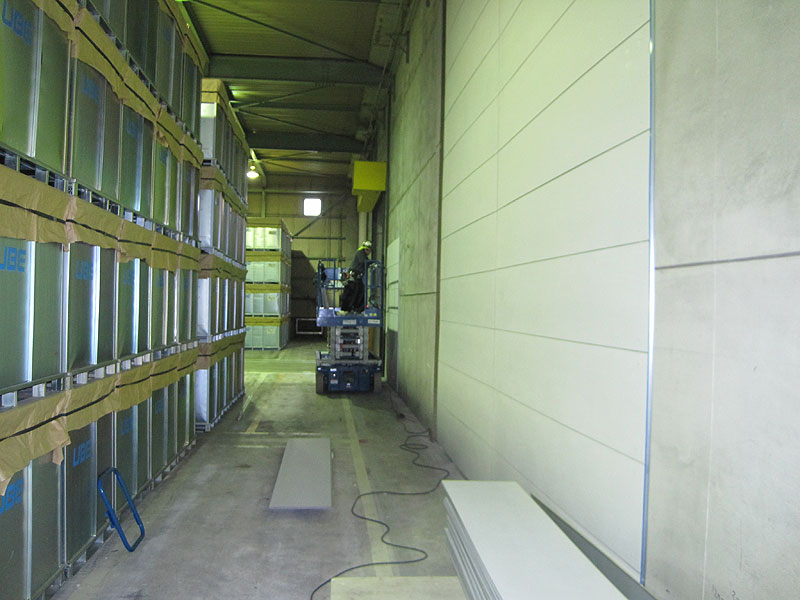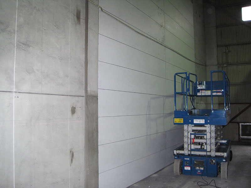 倉庫内の間仕切り壁はラスにモルタル仕上げ。